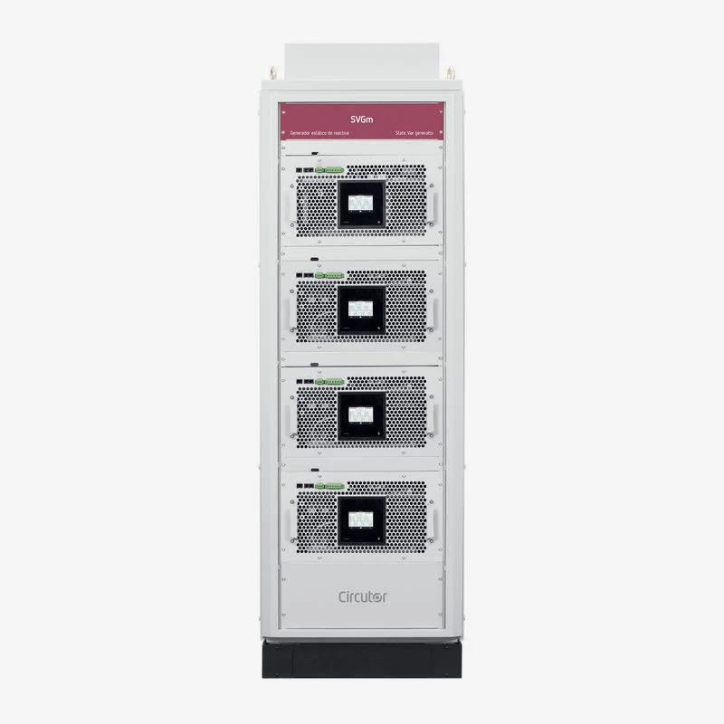 Los generadores estáticos de reactiva tipo armario SVGm constituyen la solución más precisa para la compensación de potencia reactiva, tanto en sistemas trifásicos desequilibrados como en instalaciones con potencia reactiva ya sea inductiva como capacitiva. Puede ser utilizado tanto en instalaciones trifásicas industriales como comerciales o de servicios, y no se ve afectado por los armónicos de la instalación. Equipo con mayor seguridad y con un mantenimiento muy reducido. En esta serie, el montaje de los racks se realiza en armarios estándares del mercado, diseñados para facilitar su instalación.