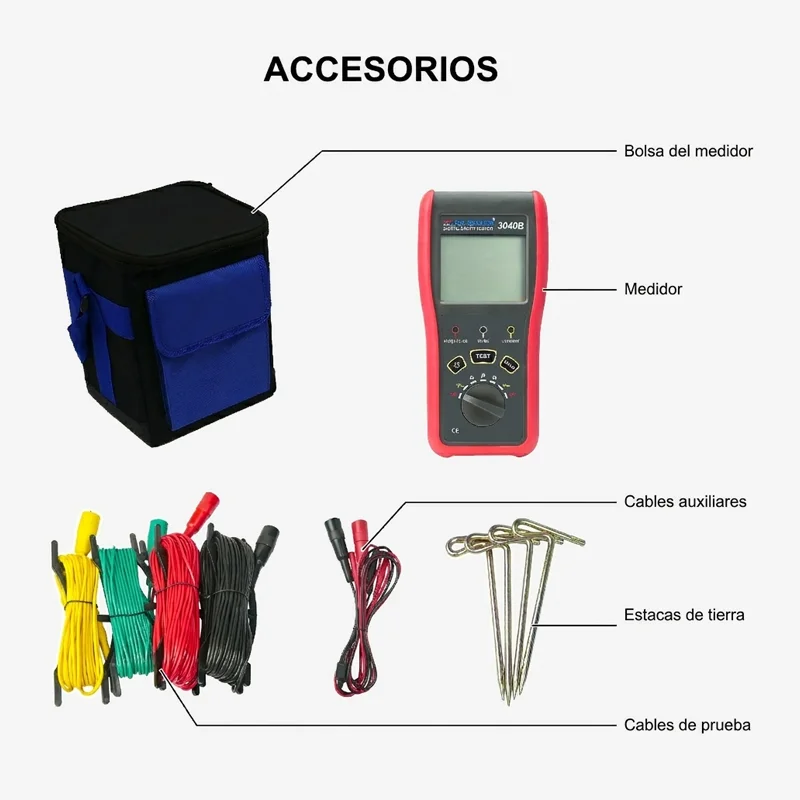- Medición de resistencia de tierra, medición de resistividad del suelo, medición de voltaje de tierra
